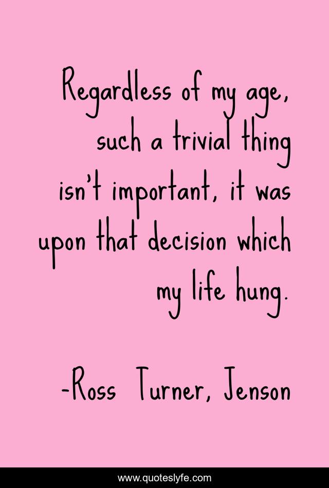 "Ross Turner, Jenson Quotes." Quoteslyfe.com, 2025. Fri. 05 Dec. 2025. <https://www.quoteslyfe.com/quote/Regardless-of-my-age-such-a-trivial-82189>.