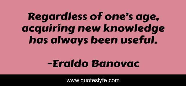 This page presents the quote "Regardless of one’s age, acquiring new knowledge has always been useful.". Author of this quote is Eraldo Banovac. This quote is about age, knowledge,.