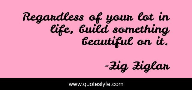 This page presents the quote "Regardless of your lot in life, build something beautiful on it.". Author of this quote is Zig Ziglar. This quote is about beautiful, build,.
