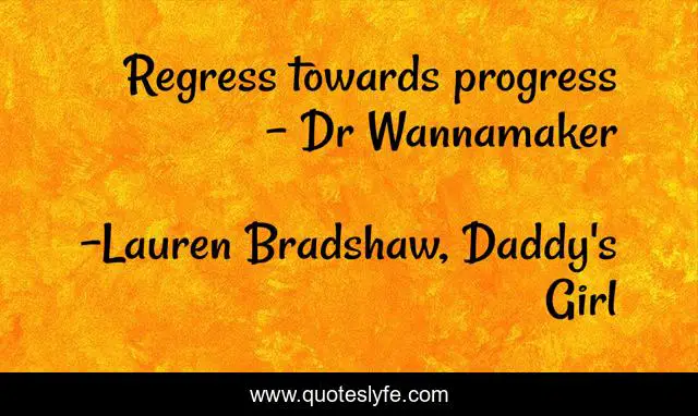 "Lauren Bradshaw, Daddy's Girl Quotes." Quoteslyfe.com, 2025. Mon. 08 Dec. 2025. <https://www.quoteslyfe.com/quote/Regress-towards-progress-Dr-Wannamaker-156320>.