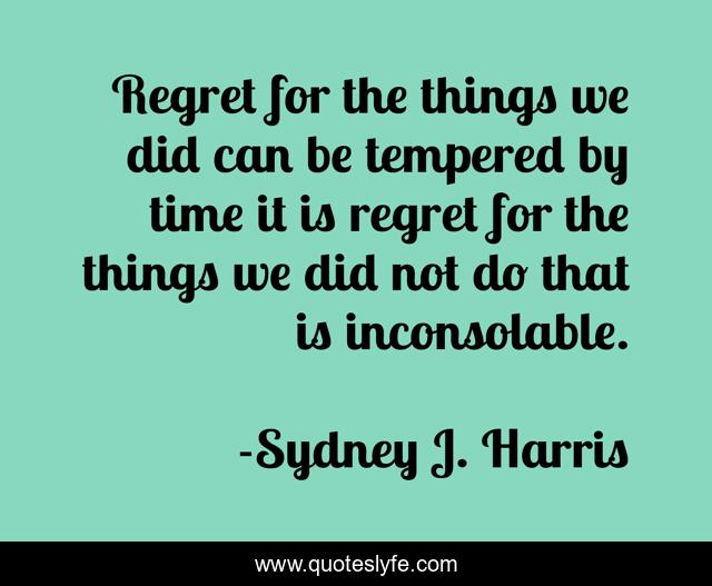 This page presents the quote "Regret for the things we did can be tempered by time it is regret for the things we did not do that is inconsolable.". Author of this quote is Sydney J. Harris. .