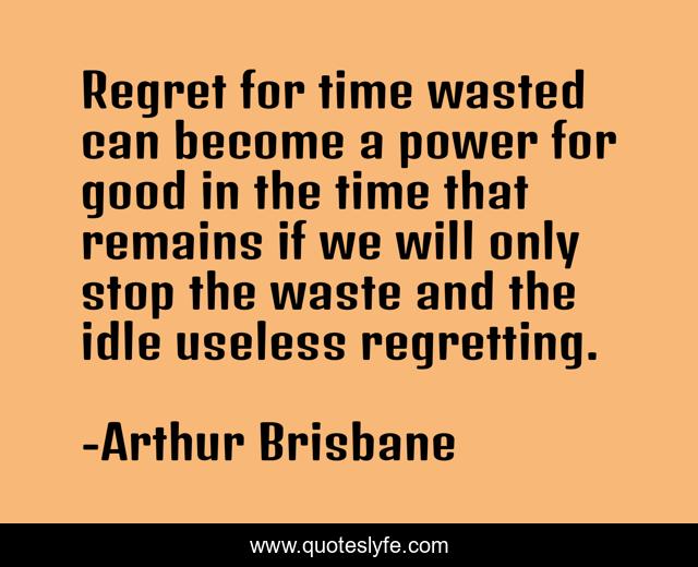 "Arthur Brisbane Quotes." Quoteslyfe.com, 2025. Fri. 05 Dec. 2025. <https://www.quoteslyfe.com/quote/Regret-for-time-wasted-can-become-a-271795>.