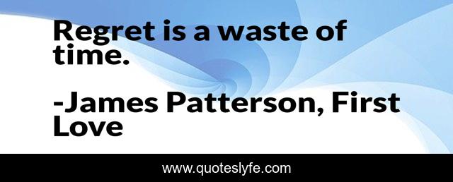 This page presents the quote "Regret is a waste of time.". Author of this quote is James Patterson, First Love. This quote is about regret, life, live, waste-of-time,.