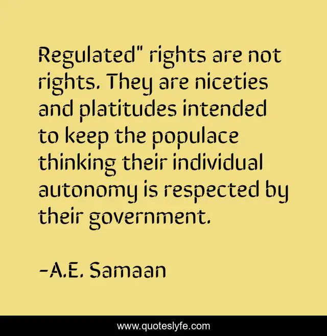 "A.E. Samaan Quotes." Quoteslyfe.com, 2025. Mon. 08 Dec. 2025. <https://www.quoteslyfe.com/quote/Regulated-rights-are-not-rights-They-are-253245>.