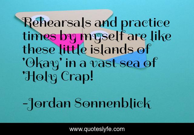 This page presents the quote "Rehearsals and practice times by myself are like these little islands of 'Okay' in a vast sea of 'Holy Crap!". Author of this quote is Jordan Sonnenblick. .