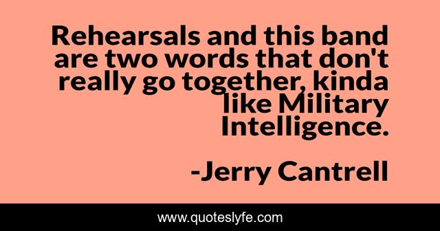 This page presents the quote "Rehearsals and this band are two words that don't really go together, kinda like Military Intelligence.". Author of this quote is Jerry Cantrell. This quote is about military, together, words,.