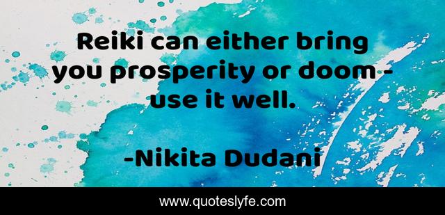 This page presents the quote "Reiki can either bring you prosperity or doom - use it well.". Author of this quote is Nikita Dudani. This quote is about magic, reiki-therapist, reiki-healing, reiki,.
