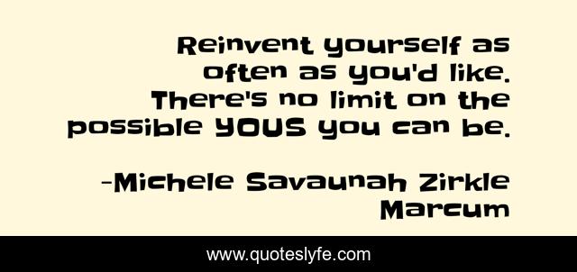 This page presents the quote "Reinvent yourself as often as you'd like. There's no limit on the possible YOUS you can be.". Author of this quote is Michele Savaunah Zirkle Marcum. This quote is about inspirational-life, enthusiasm, inspirational,.