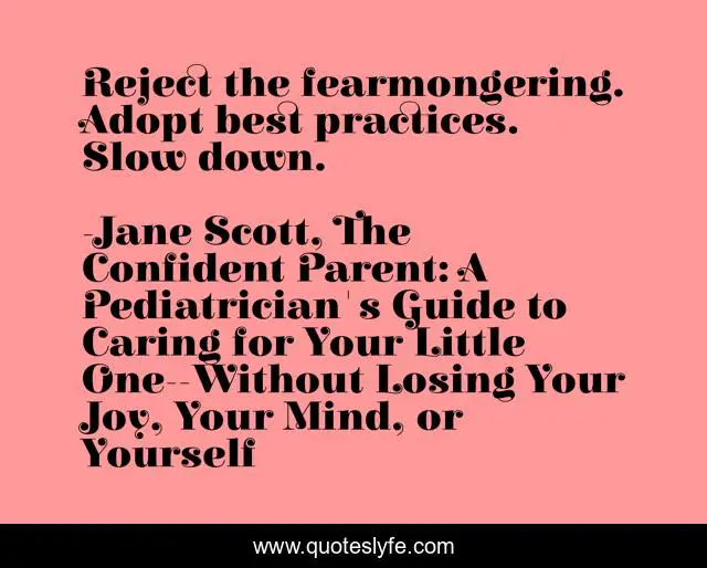 "Jane Scott, The Confident Parent: A Pediatrician's Guide to Caring for Your Little One--Without Losing Your Joy, Your Mind, or Yourself Quotes." Quoteslyfe.com, 2025. Sat. 06 Dec. 2025. <https://www.quoteslyfe.com/quote/Reject-the-fearmongering-Adopt-best-practices-Slow-99485>.