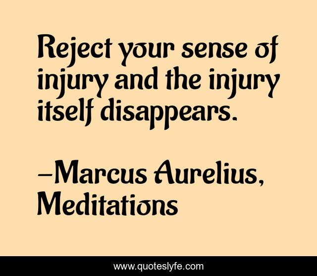 "Marcus Aurelius, Meditations Quotes." Quoteslyfe.com, 2025. Mon. 08 Dec. 2025. <https://www.quoteslyfe.com/quote/Reject-your-sense-of-injury-and-the-179633>.