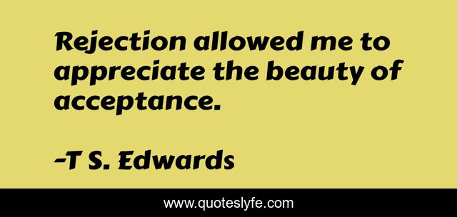 This page presents the quote "Rejection allowed me to appreciate the beauty of acceptance.". Author of this quote is T S. Edwards. This quote is about confidence, positive, motivational, optimistic, inspirational, quotes-to-live-by, enthusiasm,.