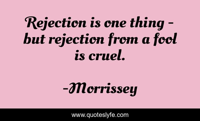 This page presents the quote "Rejection is one thing - but rejection from a fool is cruel.". Author of this quote is Morrissey. This quote is about humor, music, lyrics,.