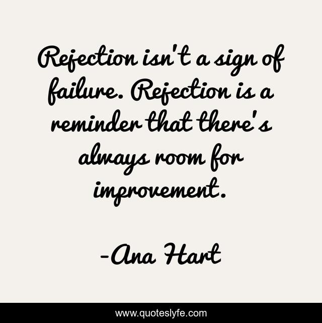 This page presents the quote "Rejection isn't a sign of failure. Rejection is a reminder that there's always room for improvement.". Author of this quote is Ana Hart. This quote is about enthusiasm, inspirational, writing,.