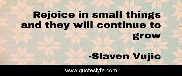 "Slaven Vujic Quotes." Quoteslyfe.com, 2025. Fri. 05 Dec. 2025. <https://www.quoteslyfe.com/quote/Rejoice-in-small-things-and-they-will-139690>.