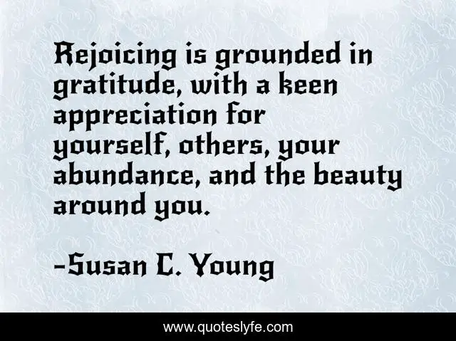 "Susan C. Young Quotes." Quoteslyfe.com, 2025. Fri. 05 Dec. 2025. <https://www.quoteslyfe.com/quote/Rejoicing-is-grounded-in-gratitude-with-a-33044>.