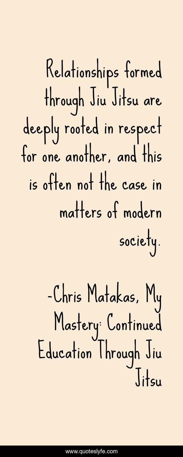 "Chris Matakas, My Mastery: Continued Education Through Jiu Jitsu Quotes." Quoteslyfe.com, 2025. Sun. 07 Dec. 2025. <https://www.quoteslyfe.com/quote/Relationships-formed-through-Jiu-Jitsu-are-deeply-86455>.