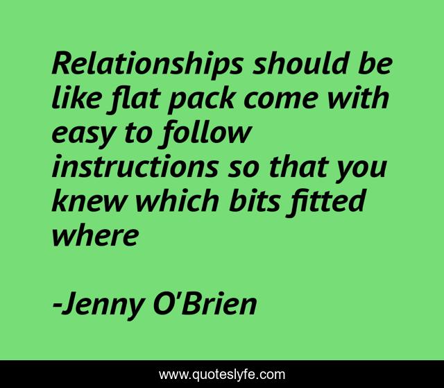 "Jenny O'Brien Quotes." Quoteslyfe.com, 2025. Fri. 05 Dec. 2025. <https://www.quoteslyfe.com/quote/Relationships-should-be-like-flat-pack-come-35624>.