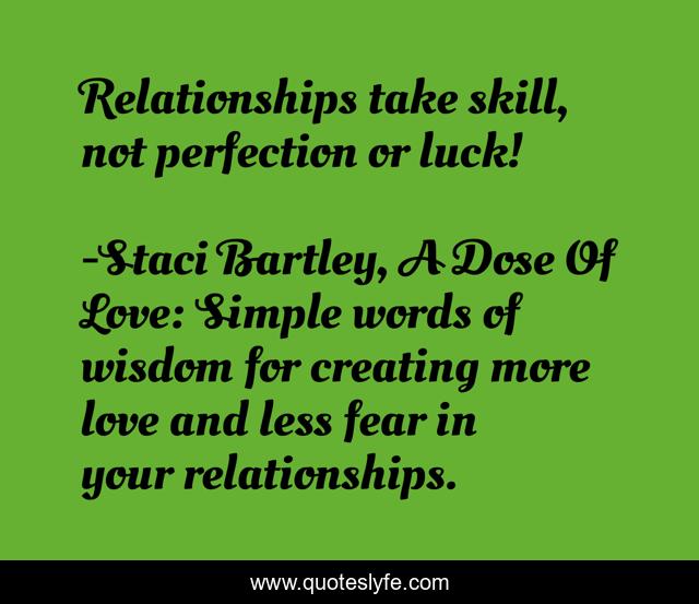 "Staci Bartley, A Dose Of Love: Simple words of wisdom for creating more love and less fear in your relationships. Quotes." Quoteslyfe.com, 2025. Mon. 08 Dec. 2025. <https://www.quoteslyfe.com/quote/Relationships-take-skill-not-perfection-or-luck-35724>.