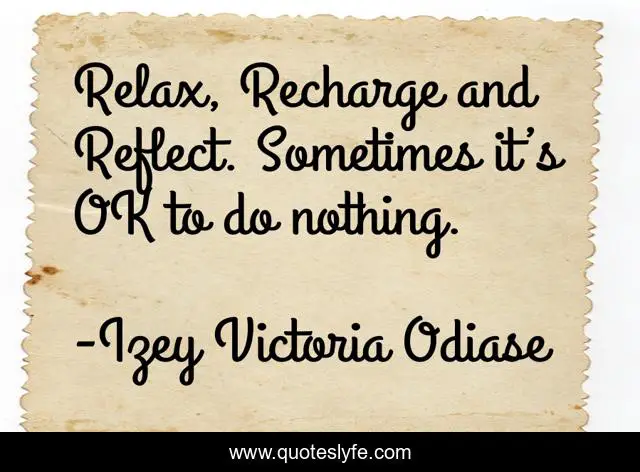 "Izey Victoria Odiase Quotes." Quoteslyfe.com, 2025. Fri. 05 Dec. 2025. <https://www.quoteslyfe.com/quote/Relax-Recharge-and-Reflect-Sometimes-it-s-29523>.