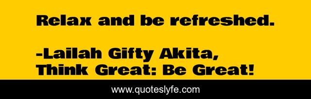 "Lailah Gifty Akita, Think Great: Be Great! Quotes." Quoteslyfe.com, 2025. Sat. 06 Dec. 2025. <https://www.quoteslyfe.com/quote/Relax-and-be-refreshed-207513>.