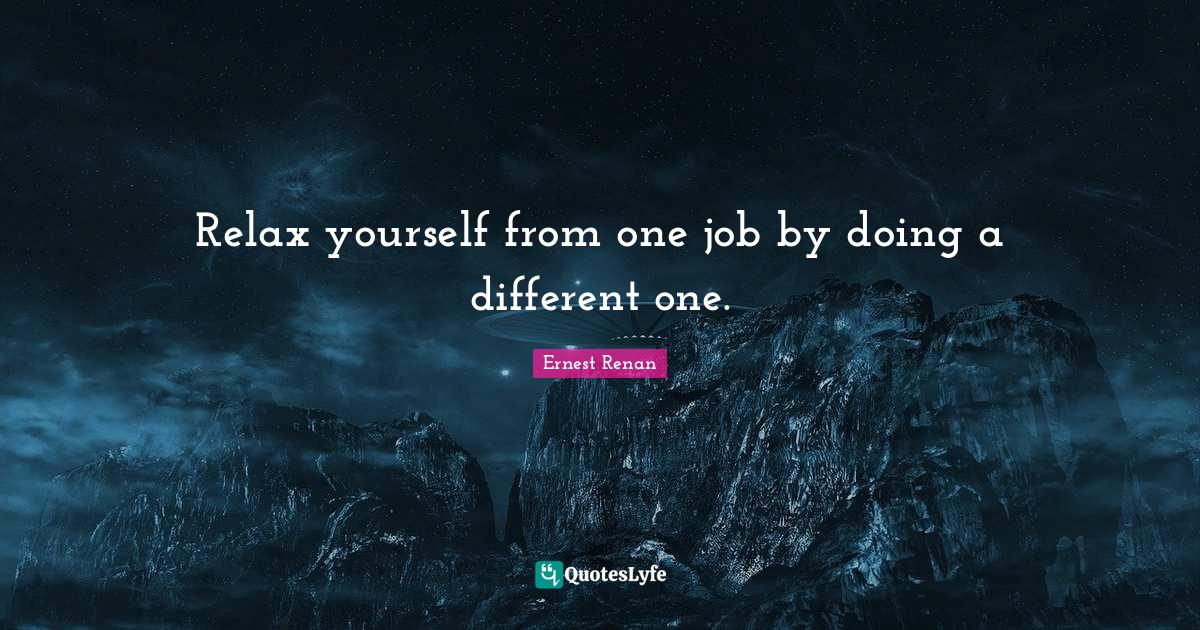 "Ernest Renan Quotes." Quoteslyfe.com, 2026. Thu. 19 Mar. 2026. <https://www.quoteslyfe.com/quote/Relax-yourself-from-one-job-by-doing-566484>.