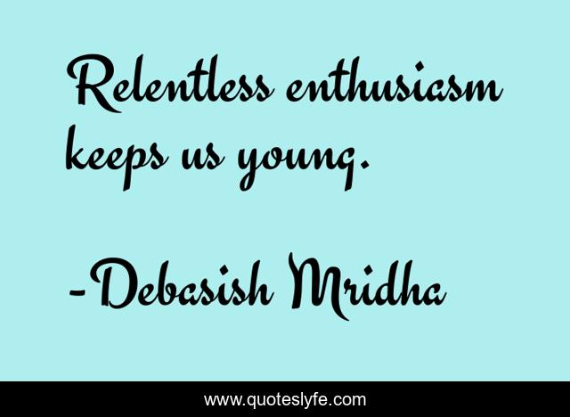 "Debasish Mridha Quotes." Quoteslyfe.com, 2025. Mon. 08 Dec. 2025. <https://www.quoteslyfe.com/quote/Relentless-enthusiasm-keeps-us-young-74382>.