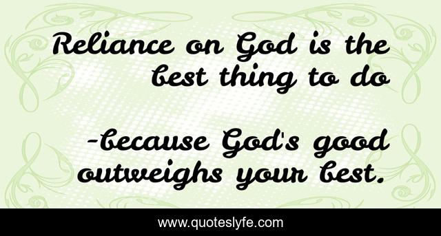 "because God's good outweighs your best. Quotes." Quoteslyfe.com, 2025. Sat. 06 Dec. 2025. <https://www.quoteslyfe.com/quote/Reliance-on-God-is-the-best-thing-11859>.