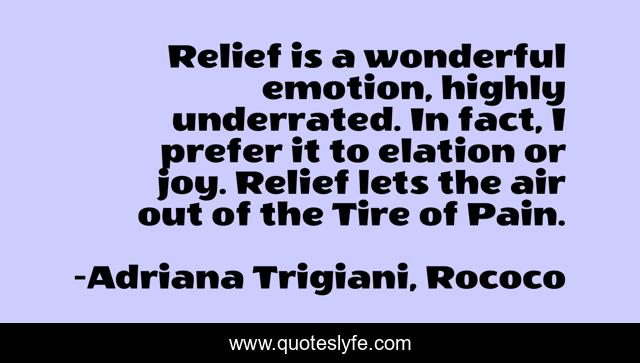 "Adriana Trigiani, Rococo Quotes." Quoteslyfe.com, 2025. Mon. 08 Dec. 2025. <https://www.quoteslyfe.com/quote/Relief-is-a-wonderful-emotion-highly-underrated-75536>.