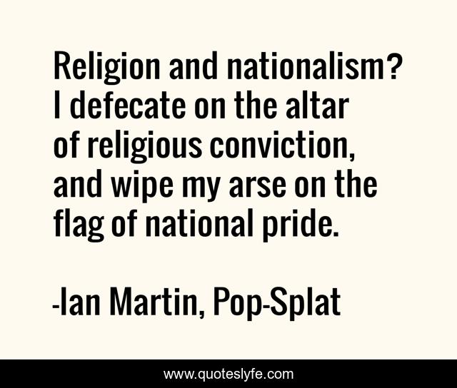 "Ian Martin, Pop-Splat Quotes." Quoteslyfe.com, 2025. Fri. 05 Dec. 2025. <https://www.quoteslyfe.com/quote/Religion-and-nationalism-I-defecate-on-the-100477>.