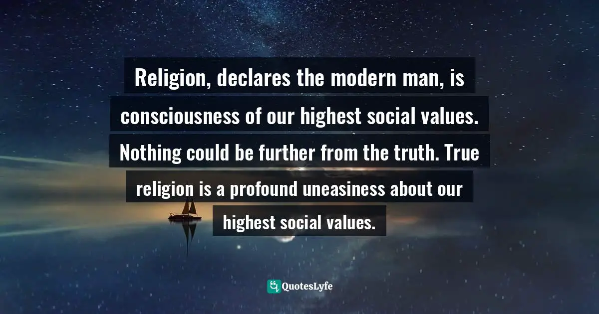 Religion, declares the modern man, is consciousness of our highest social values. Nothing could be further from the truth. True religion is a profound uneasiness about our highest social values.