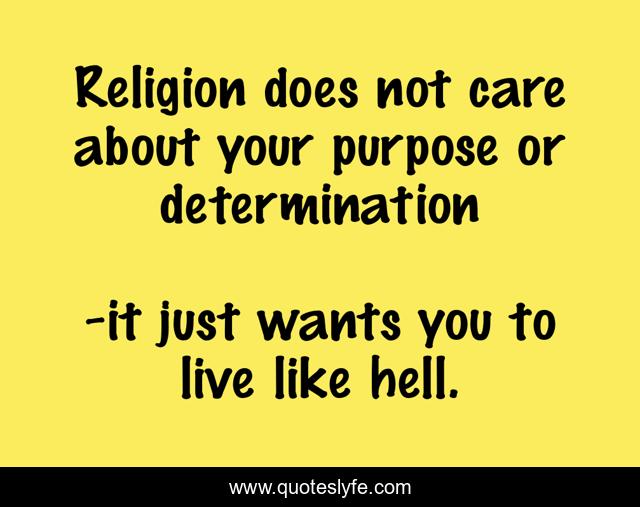 This page presents the quote "Religion does not care about your purpose or determination". Author of this quote is it just wants you to live like hell.. .