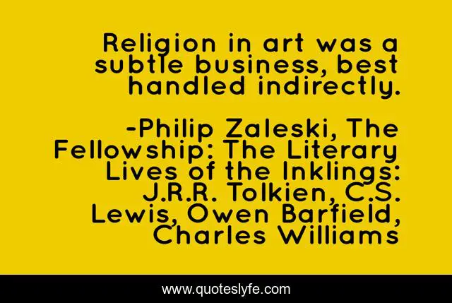 "Philip Zaleski, The Fellowship: The Literary Lives of the Inklings: J.R.R. Tolkien, C.S. Lewis, Owen Barfield, Charles Williams Quotes." Quoteslyfe.com, 2025. Fri. 05 Dec. 2025. <https://www.quoteslyfe.com/quote/Religion-in-art-was-a-subtle-business-160918>.