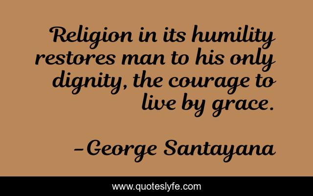 This page presents the quote "Religion in its humility restores man to his only dignity, the courage to live by grace.". Author of this quote is George Santayana. This quote is about courage, man, humility,.