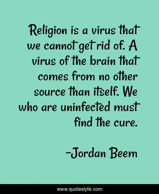 "Jordan Beem Quotes." Quoteslyfe.com, 2025. Sat. 06 Dec. 2025. <https://www.quoteslyfe.com/quote/Religion-is-a-virus-that-we-cannot-105753>.