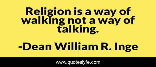 This page presents the quote "Religion is a way of walking not a way of talking.". Author of this quote is Dean William R. Inge. .