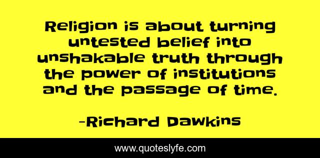 This page presents the quote "Religion is about turning untested belief into unshakable truth through the power of institutions and the passage of time.". Author of this quote is Richard Dawkins. This quote is about organized-religion, richard-dawkins, institutions, religion,.