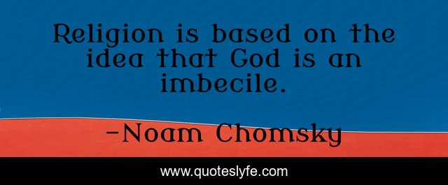This page presents the quote "Religion is based on the idea that God is an imbecile.". Author of this quote is Noam Chomsky. This quote is about atheism, god, religion,.
