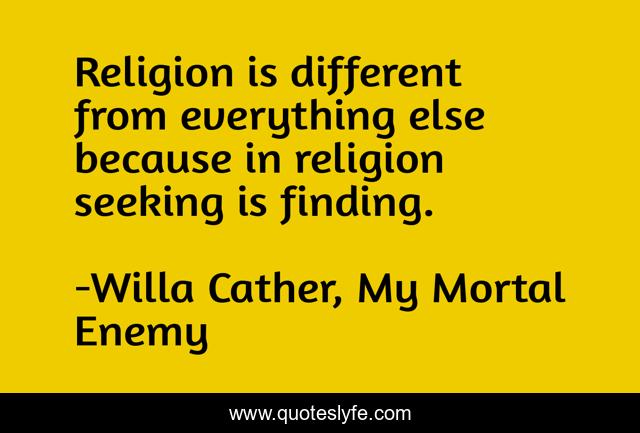 This page presents the quote "Religion is different from everything else because in religion seeking is finding.". Author of this quote is Willa Cather, My Mortal Enemy. .