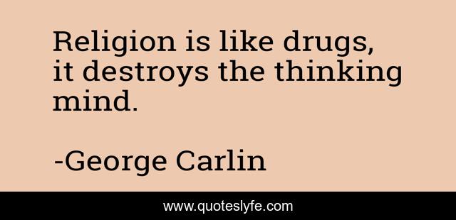 This page presents the quote "Religion is like drugs, it destroys the thinking mind.". Author of this quote is George Carlin. This quote is about atheism, religion, mind, thinking,.