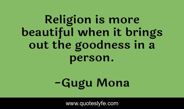 This page presents the quote "Religion is more beautiful when it brings out the goodness in a person.". Author of this quote is Gugu Mona. This quote is about beautiful, person, goodness, religion,.