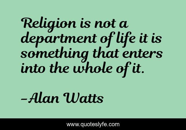 This page presents the quote "Religion is not a department of life it is something that enters into the whole of it.". Author of this quote is Alan Watts. This quote is about life, whole, something,.