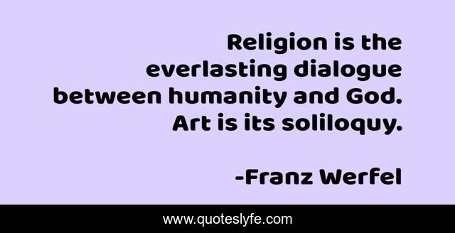 This page presents the quote "Religion is the everlasting dialogue between humanity and God. Art is its soliloquy.". Author of this quote is Franz Werfel. This quote is about god, art, humanity,.