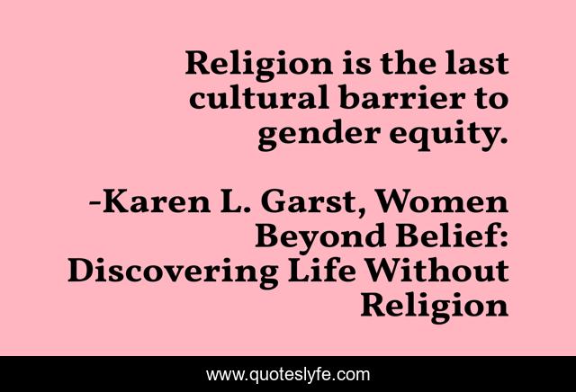"Karen L. Garst, Women Beyond Belief: Discovering Life Without Religion Quotes." Quoteslyfe.com, 2025. Sat. 06 Dec. 2025. <https://www.quoteslyfe.com/quote/Religion-is-the-last-cultural-barrier-to-101620>.