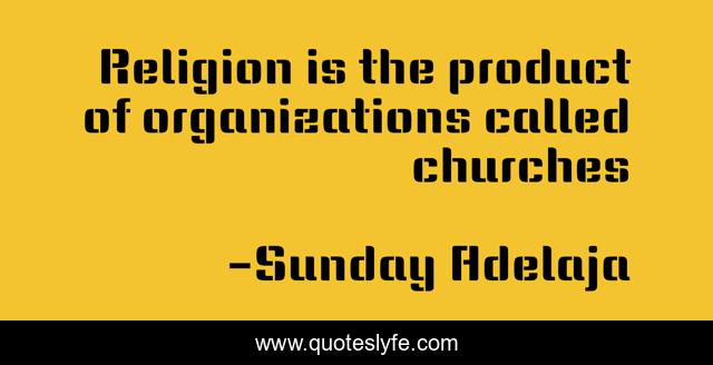 This page presents the quote "Religion is the product of organizations called churches". Author of this quote is Sunday Adelaja. This quote is about churches, product, religion,.