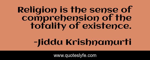 This page presents the quote "Religion is the sense of comprehension of the totality of existence.". Author of this quote is Jiddu Krishnamurti. This quote is about existence, comprehension, religion,.