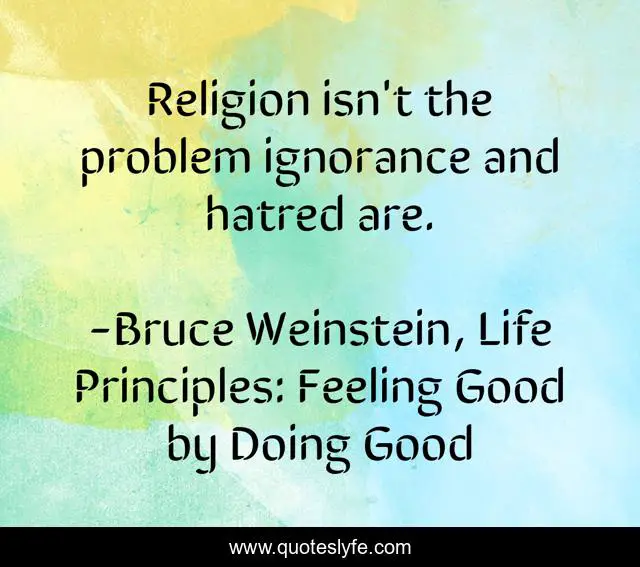 "Bruce Weinstein, Life Principles: Feeling Good by Doing Good Quotes." Quoteslyfe.com, 2025. Fri. 05 Dec. 2025. <https://www.quoteslyfe.com/quote/Religion-isn-t-the-problem-ignorance-and-30082>.