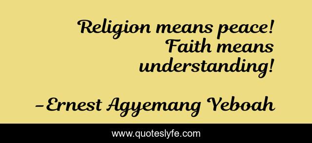 This page presents the quote "Religion means peace! Faith means understanding!". Author of this quote is Ernest Agyemang Yeboah. This quote is about faith, religion, religious, understanding,.