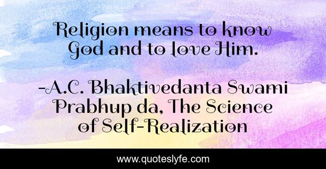 "A.C. Bhaktivedanta Swami Prabhupāda, The Science of Self-Realization Quotes." Quoteslyfe.com, 2025. Mon. 08 Dec. 2025. <https://www.quoteslyfe.com/quote/Religion-means-to-know-God-and-to-216569>.