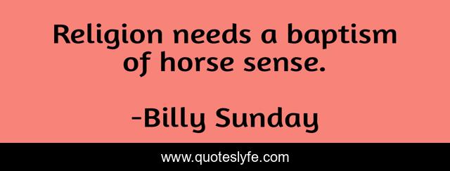 This page presents the quote "Religion needs a baptism of horse sense.". Author of this quote is Billy Sunday. This quote is about horse, baptism, sense,.