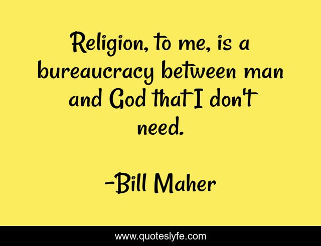 This page presents the quote "Religion, to me, is a bureaucracy between man and God that I don't need.". Author of this quote is Bill Maher. This quote is about me, god, man,.